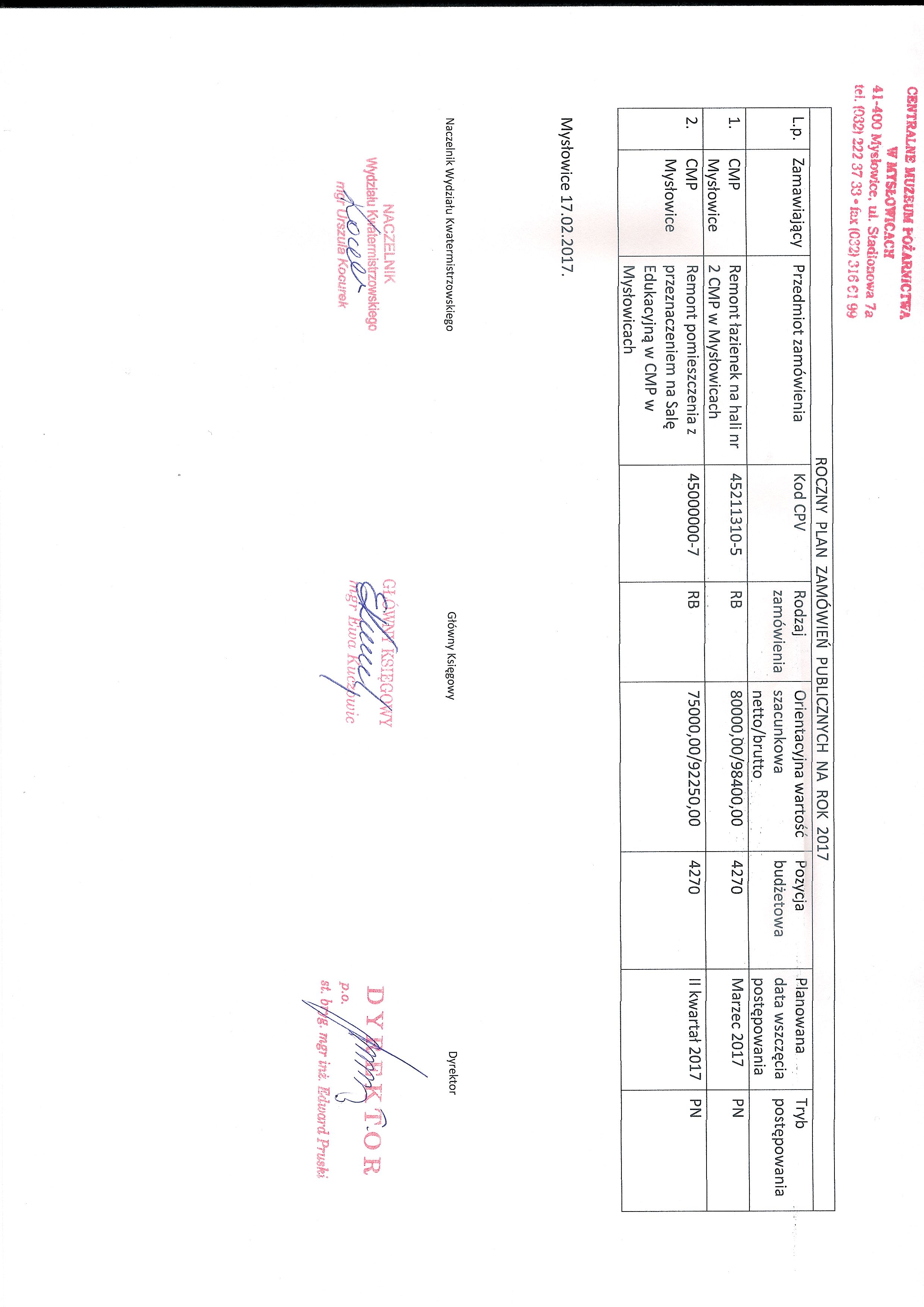 podpisano w dniu 31.05.2017 r. umowę z firmą Kompozyt Sp. z o.o. ul. Wolności 16b/1 41-500 Chorzów.